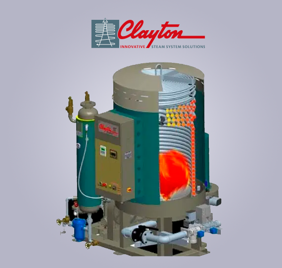 El generador de vapor Clayton Sigma Fire SF80 es un equipo compacto y eficiente diseñado para ofrecer un máximo ahorro de combustible mediante un principio de precalentamiento de aire con circulación en contraflujo de los gases de combustión, lo que le permite alcanzar una eficiencia mayor que las calderas tradicionales de tubos de humo.